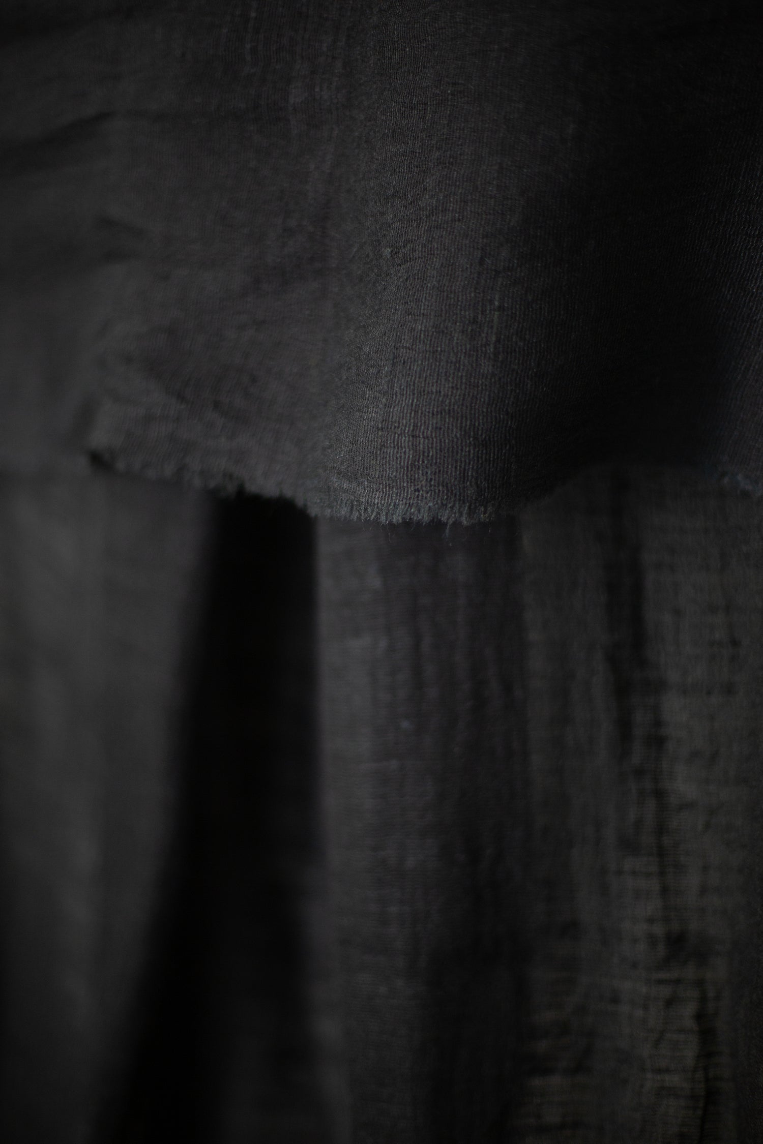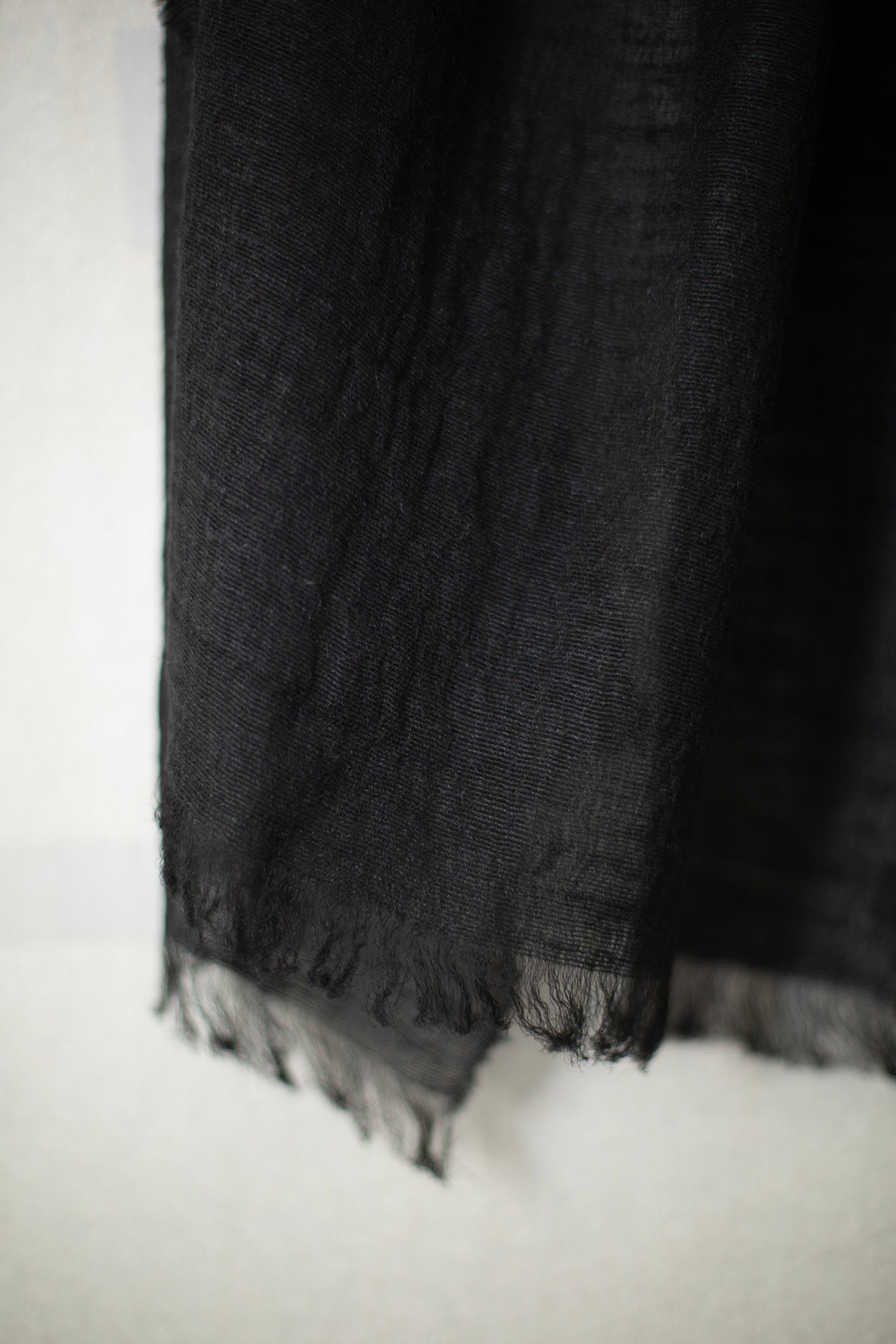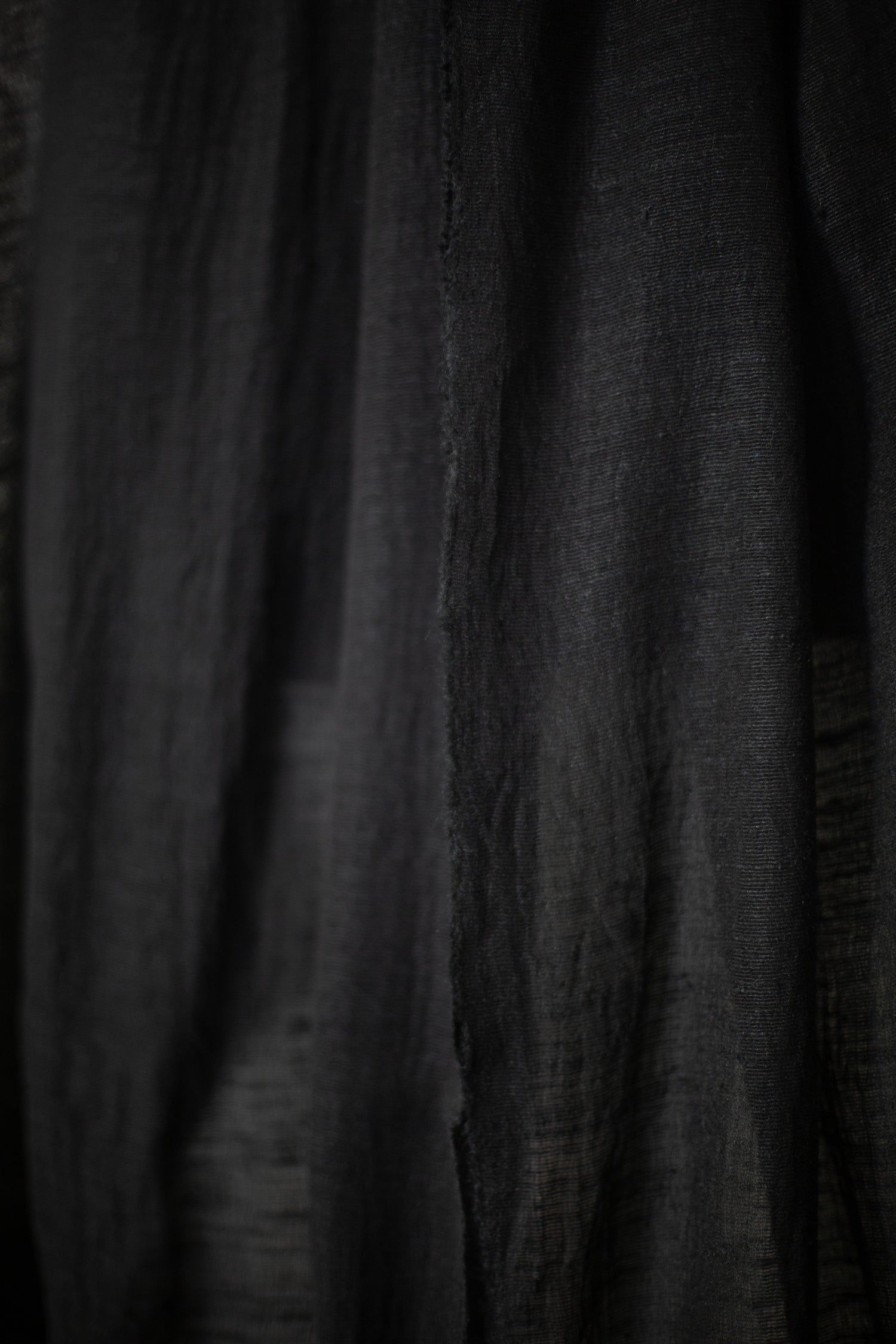 Lightweight semi sheer silk scarf by Mittan in black with crisp texture.