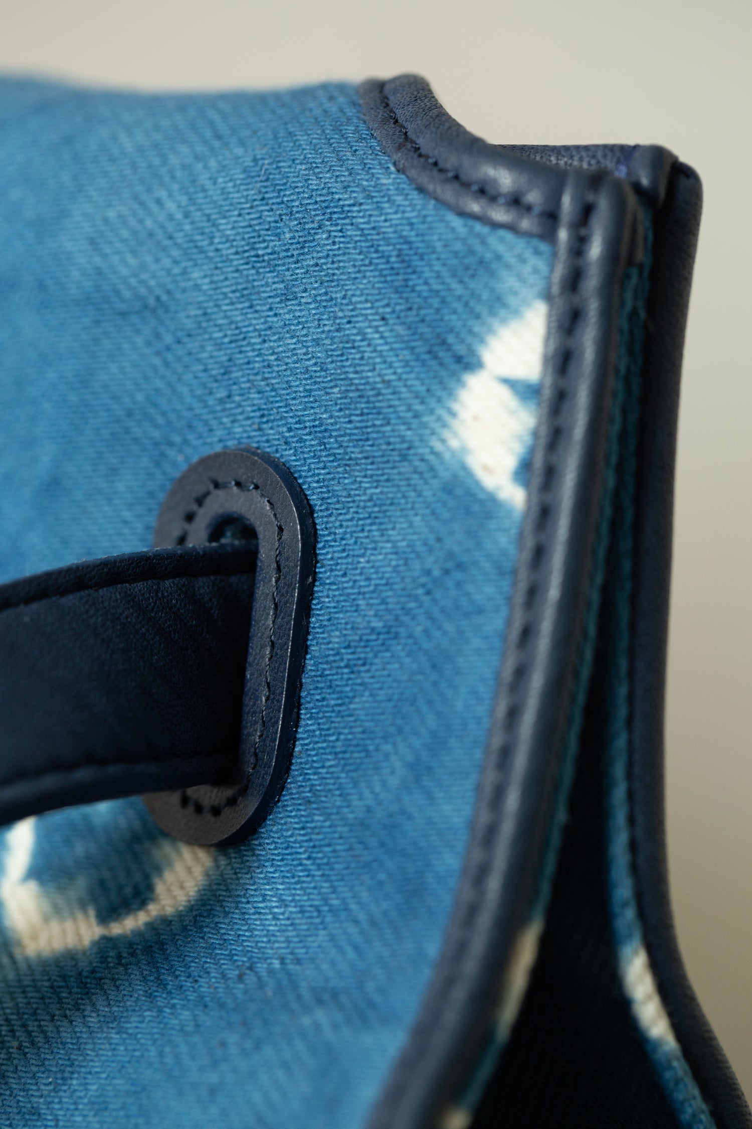 blue / ivory organic cotton 2-way tote-bag with shibori dyed pattern