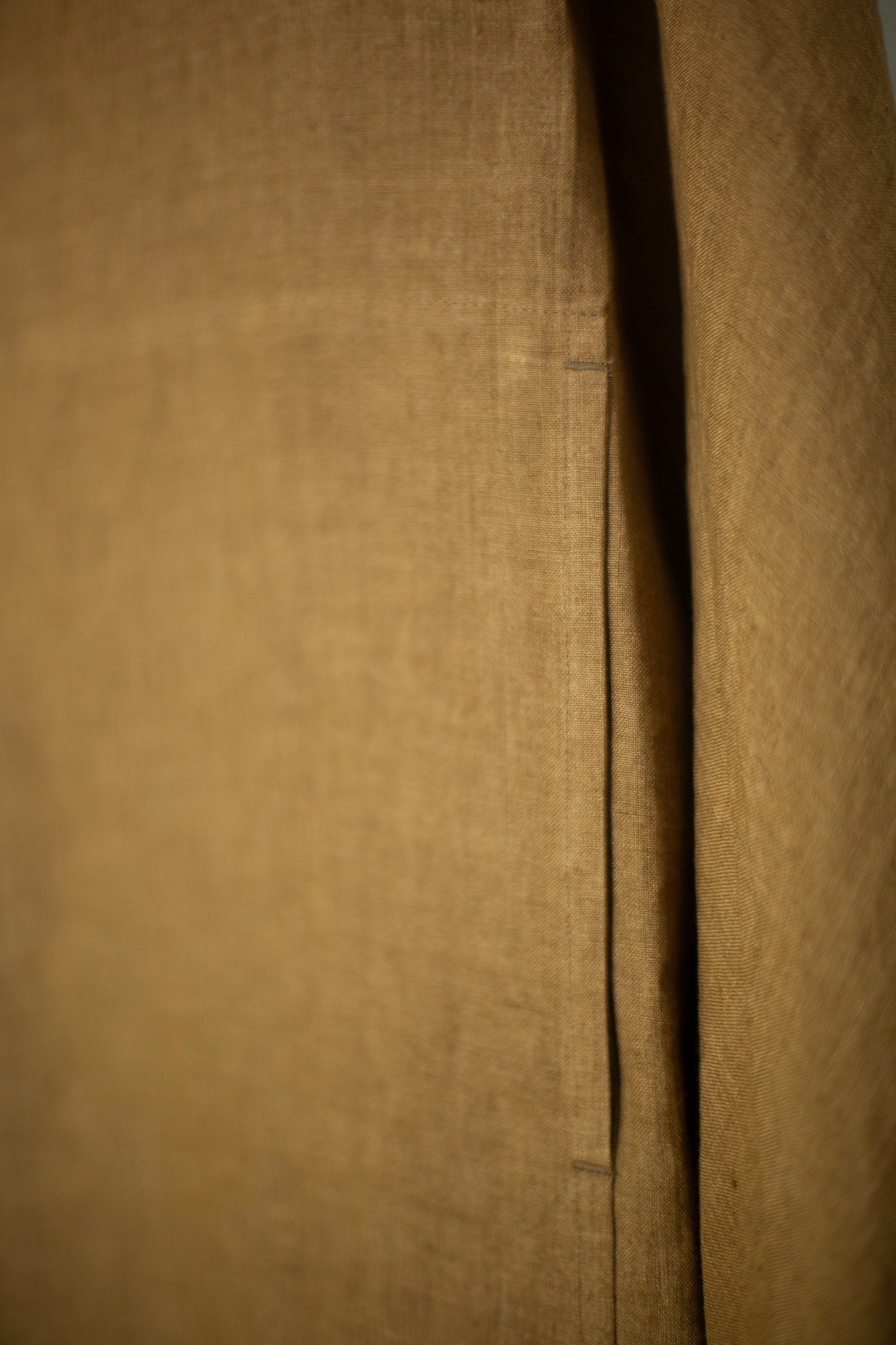 Light unlined jacket by Jurgen Lehl in ochre linen with two side pockets.