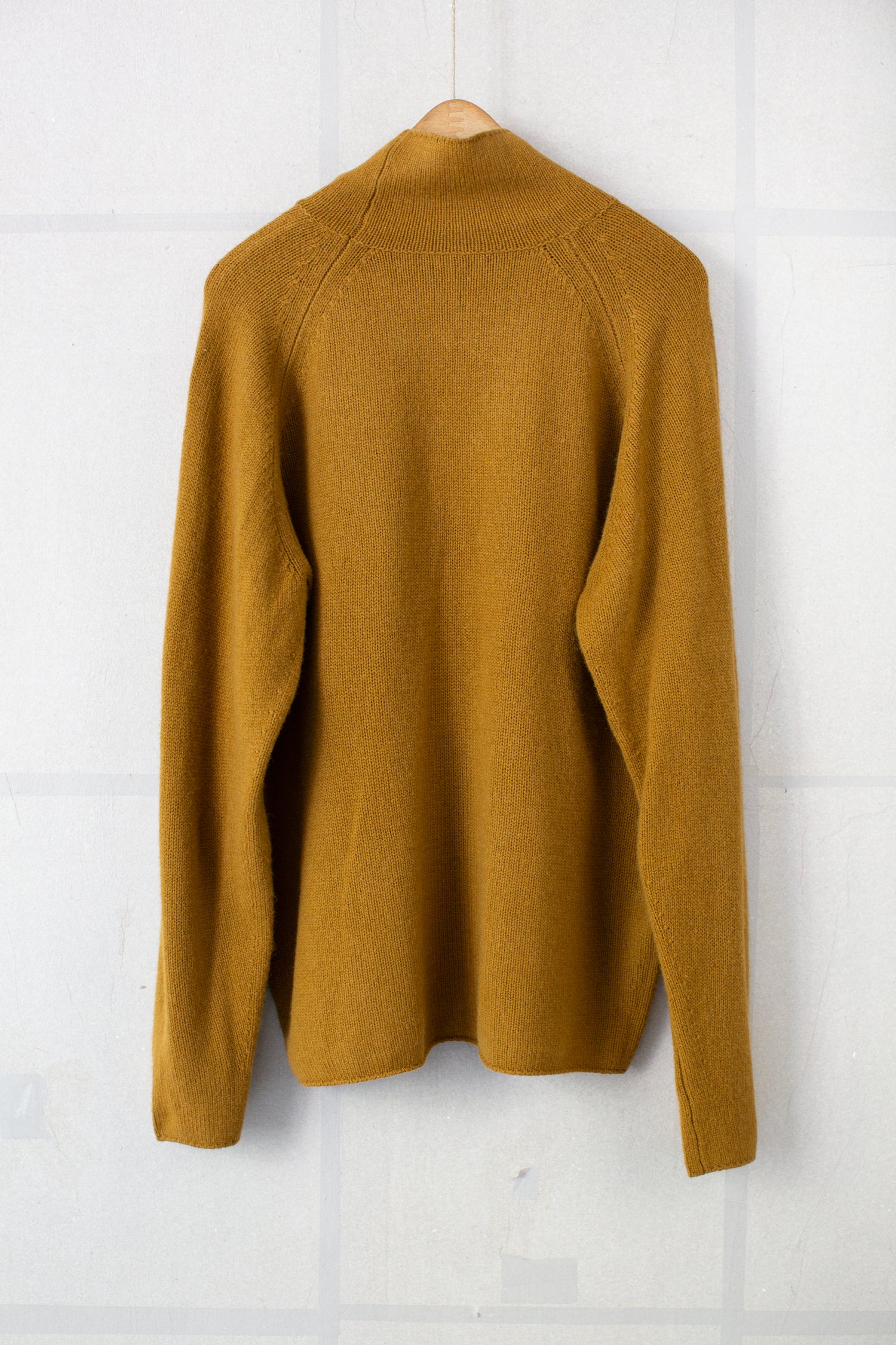 Relaxed fit ochre color turtle neck sweater by Jurgen Lehl in yak wool.