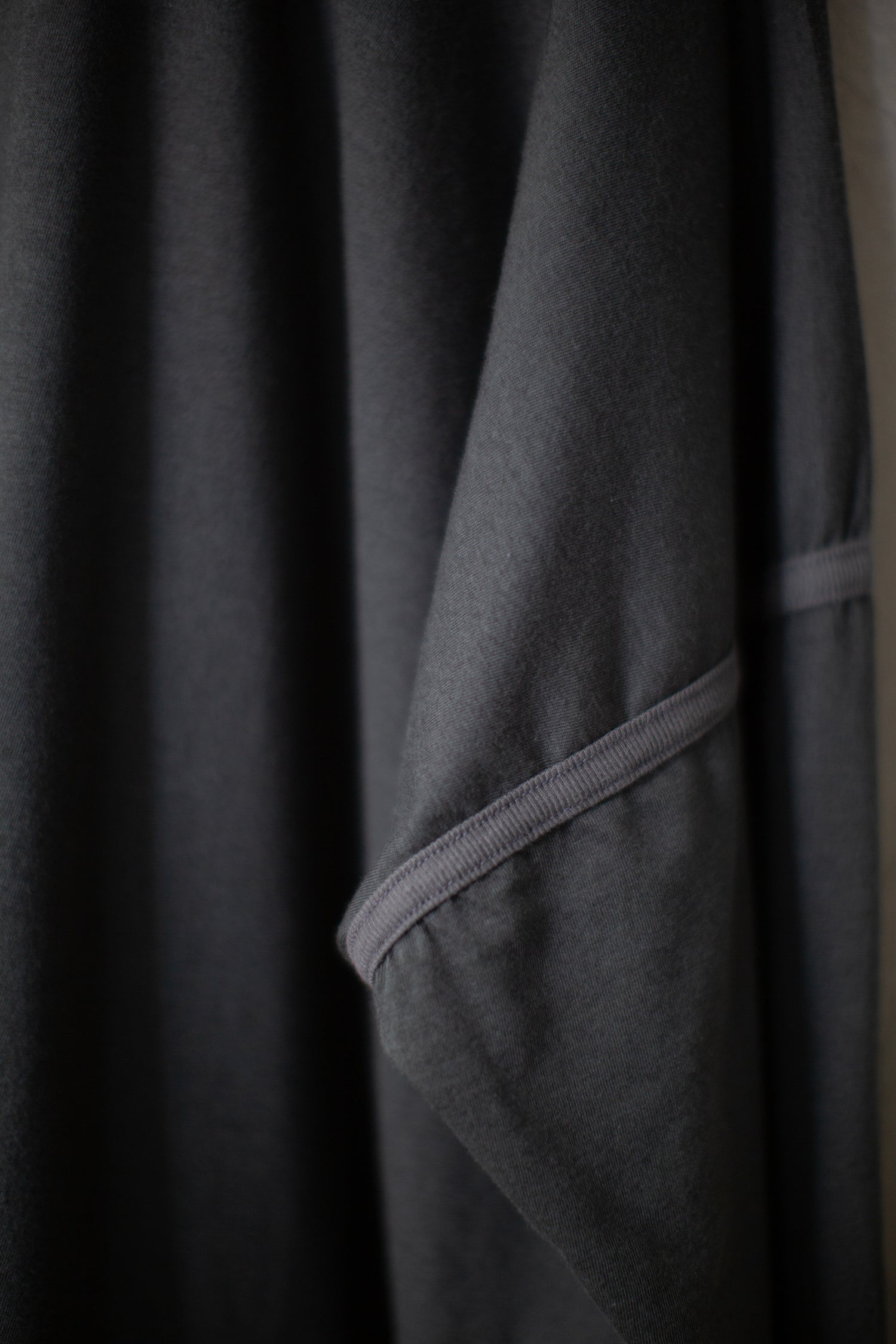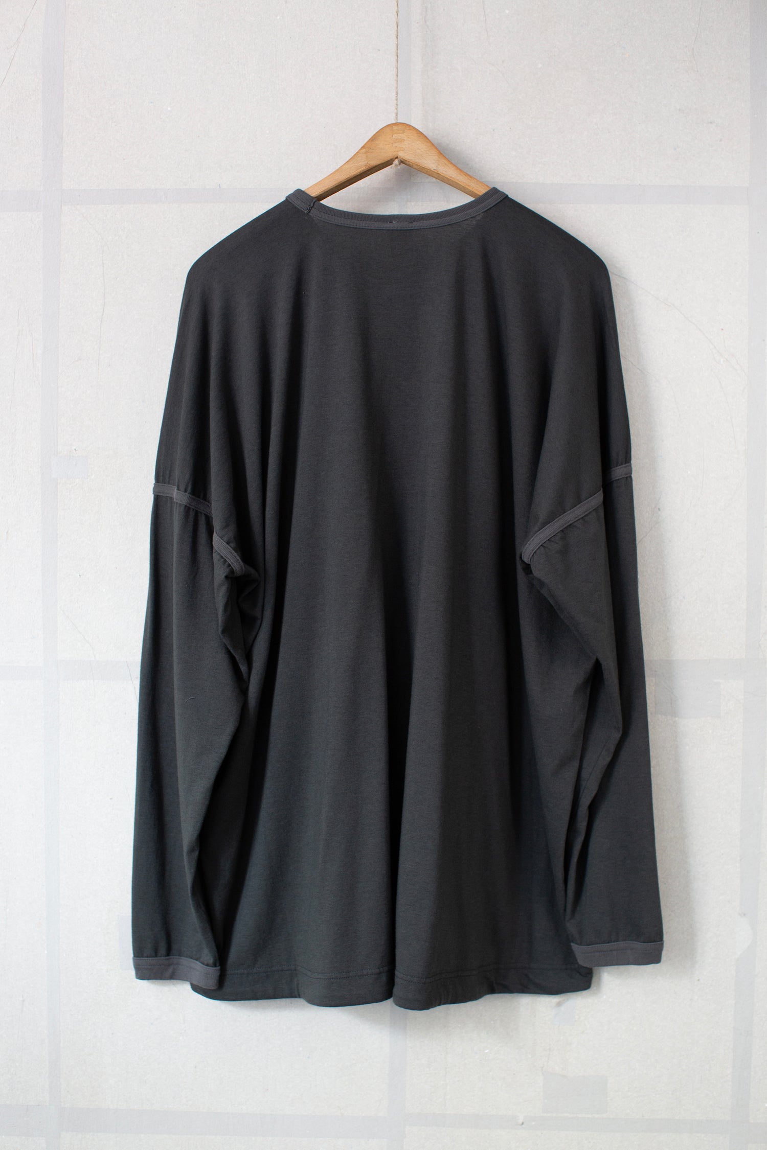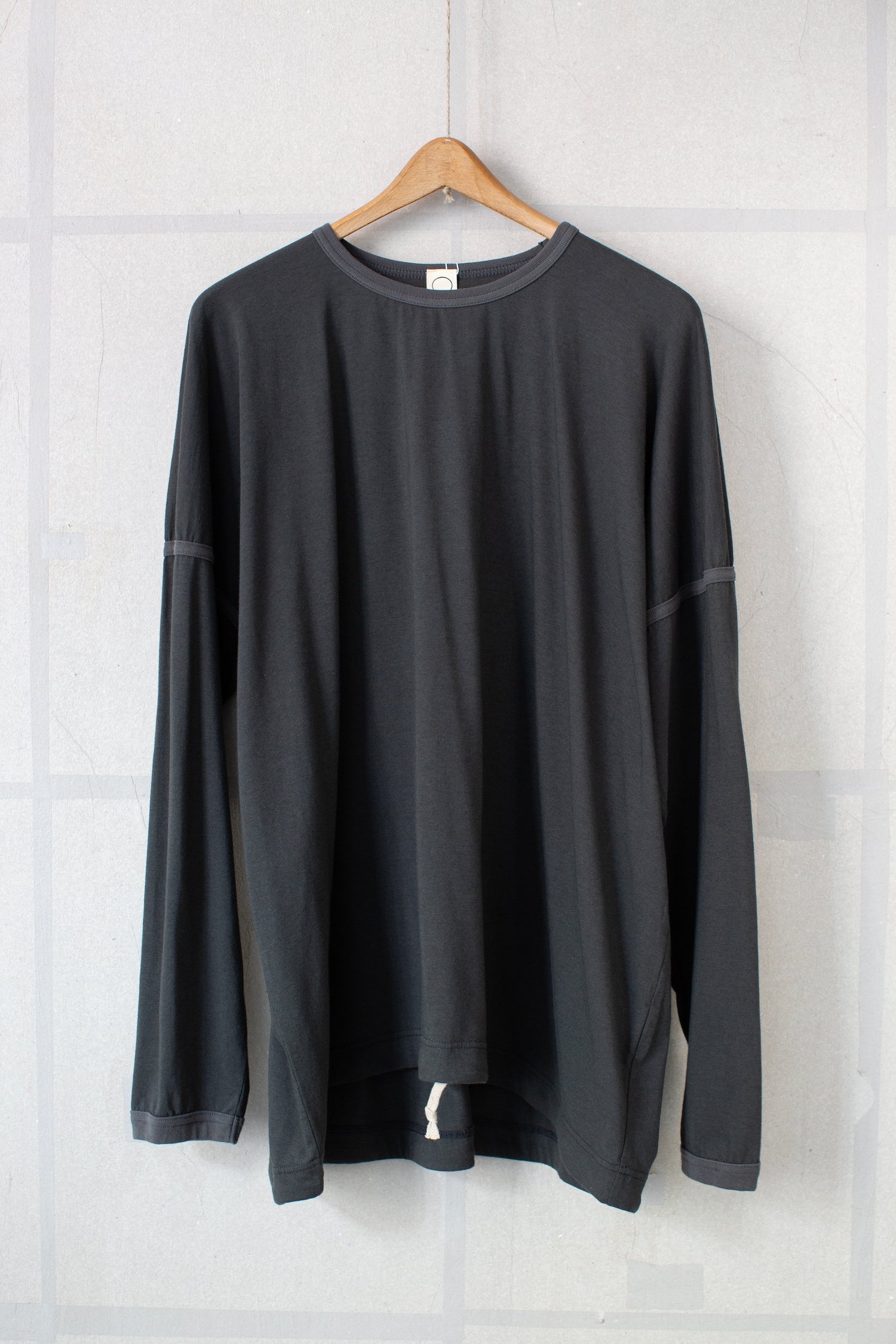 Long sleeve crewneck balloon tee in off black cotton wool jersey with taped seams and brand staple natural white drawstring in waist.