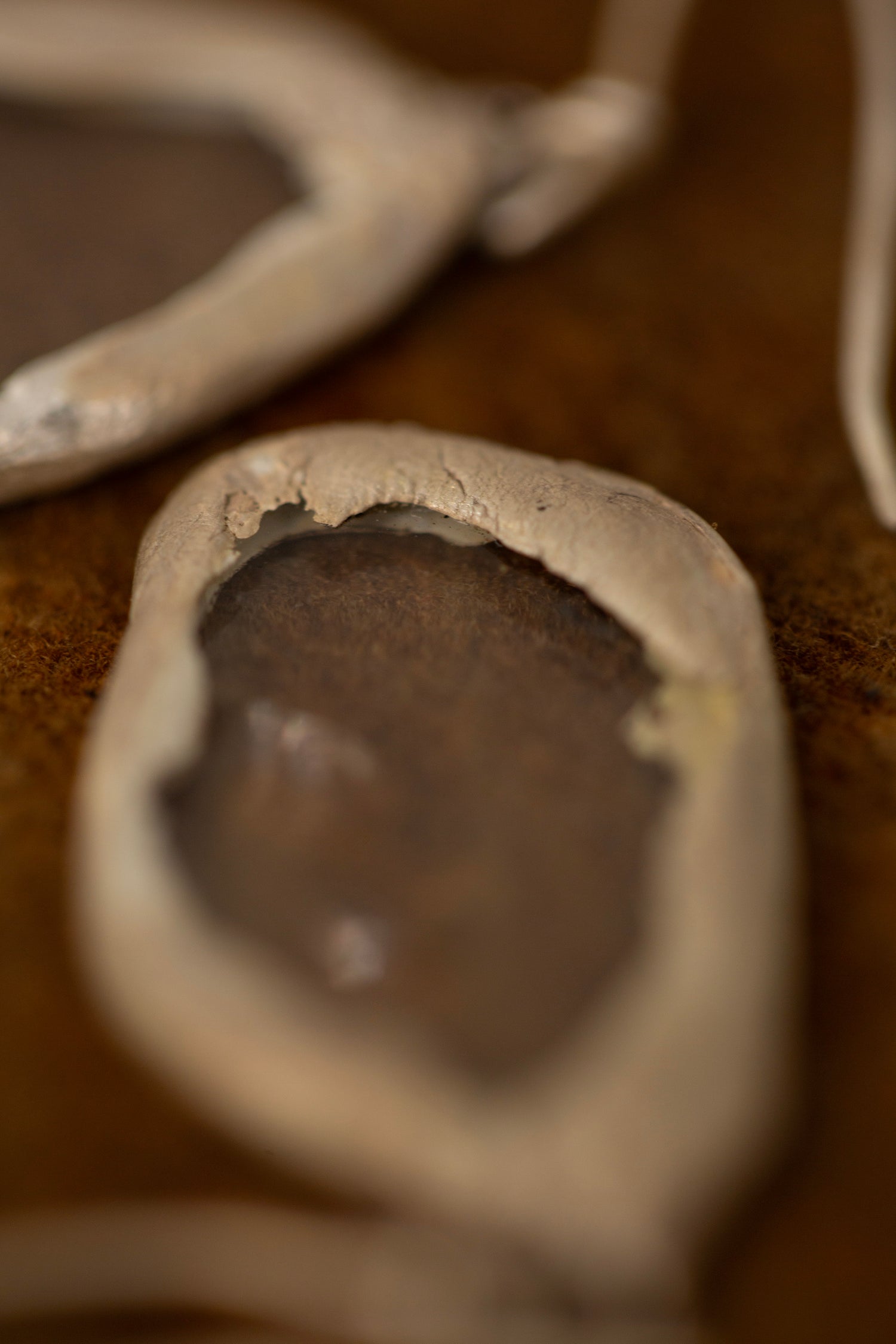 Pair of oxidized silver lined glass earrings by Atelier Inscrire