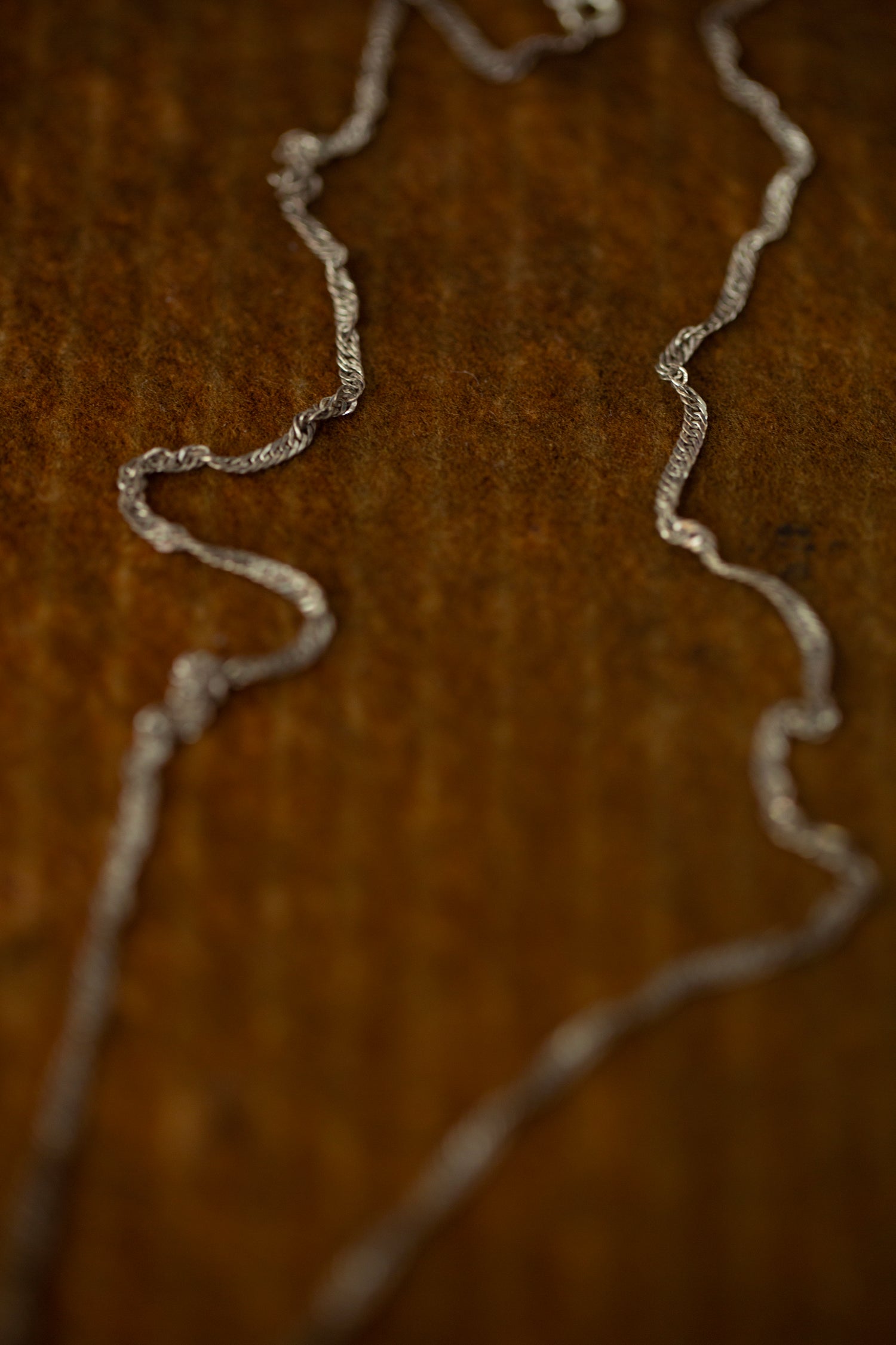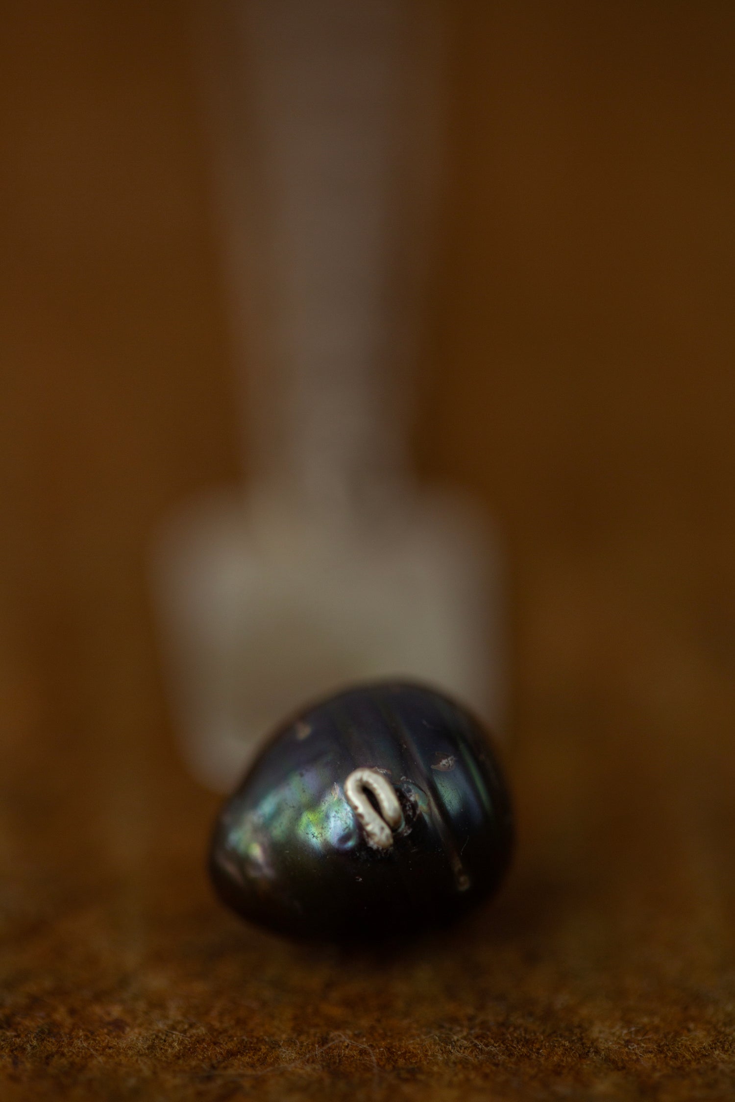 Oxidized silver necklace with plaque and black keshi pearl by Atelier Inscrire.