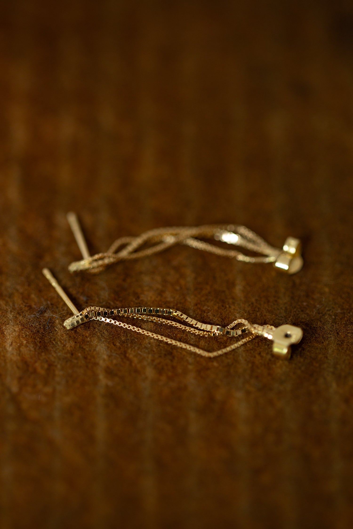 Pair of earrings with chain by Eline Faché in 18ct Gold.