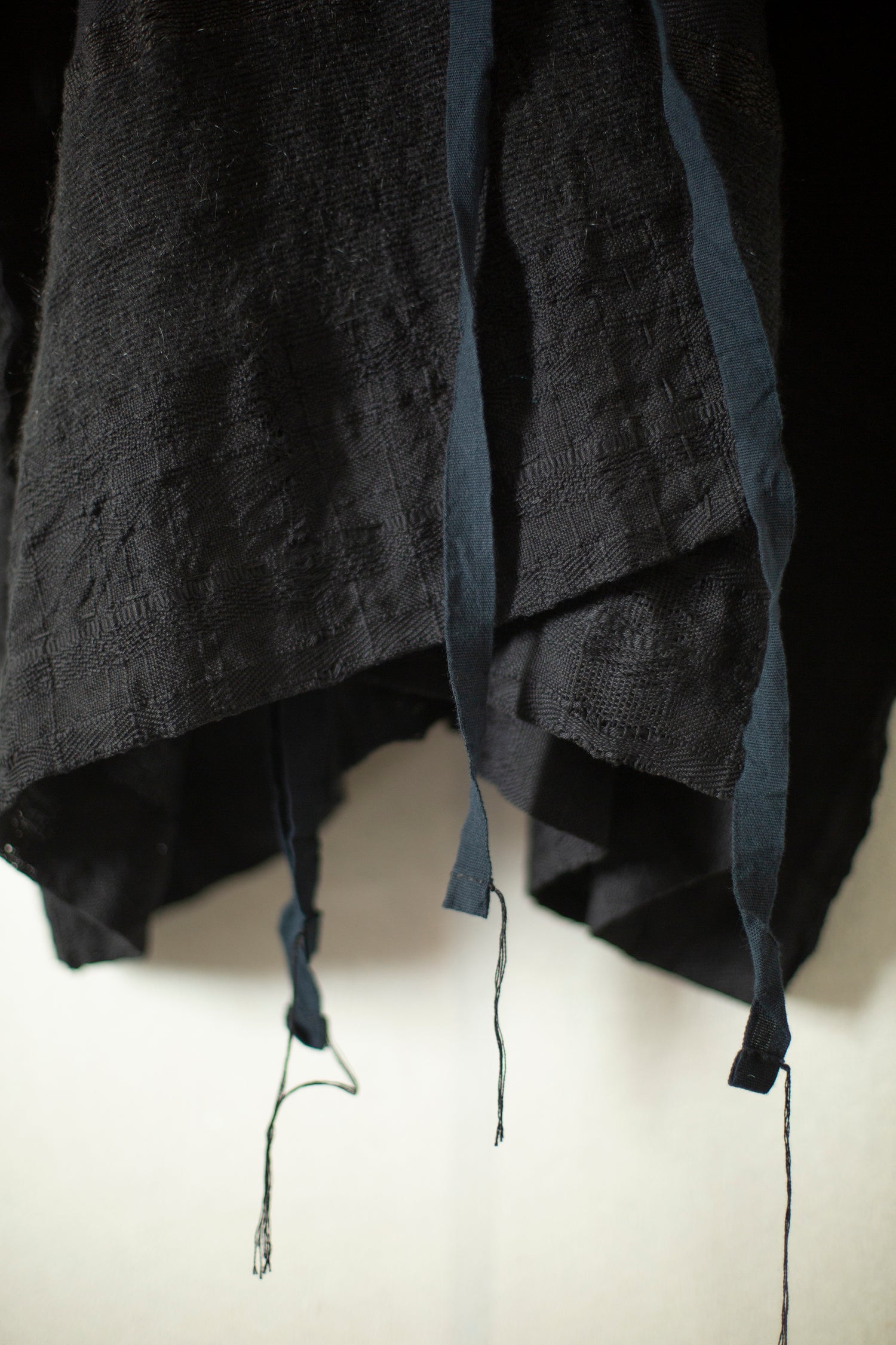 The neckline and hem are finished by hand. The ties are made with cotton tape.
