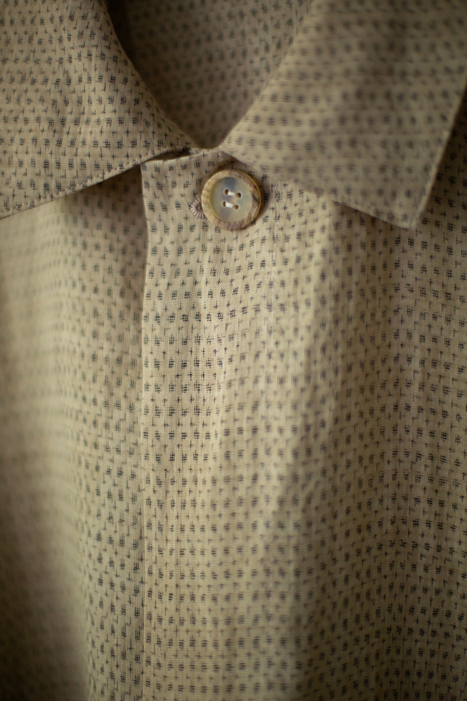 The shape is from a historic pattern of a French shirt and uses almost all the fabric of the old kimono, leaving very litttle waste.