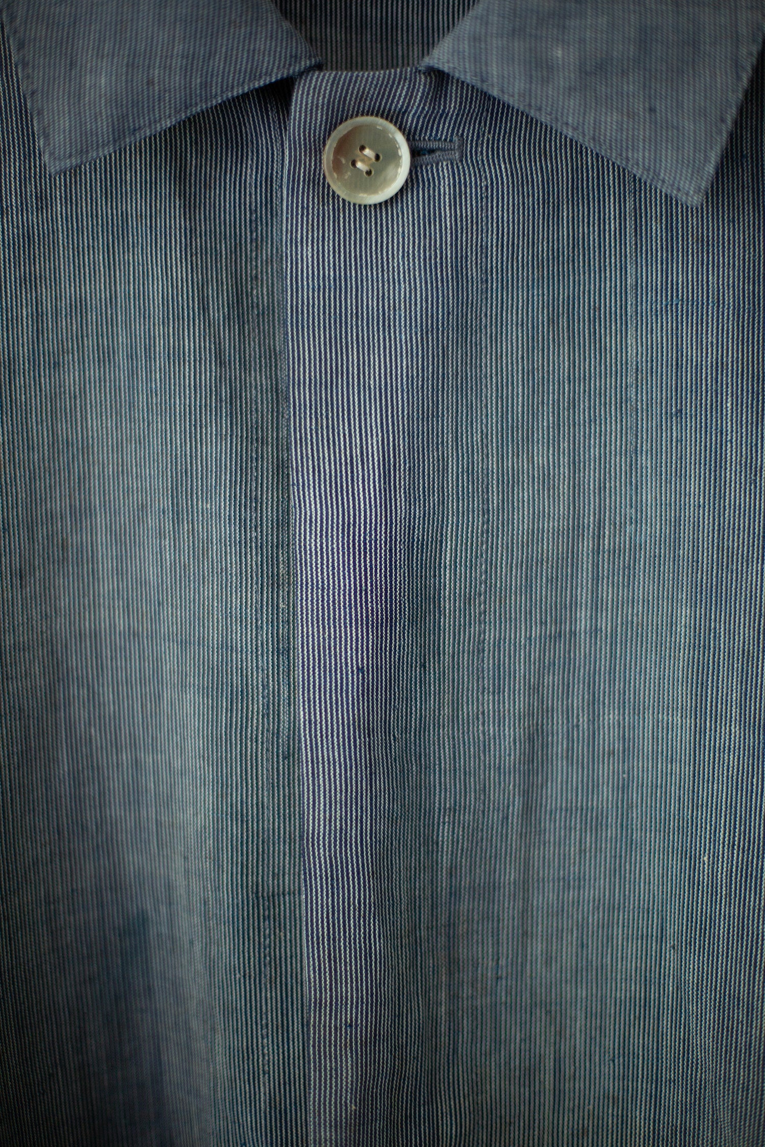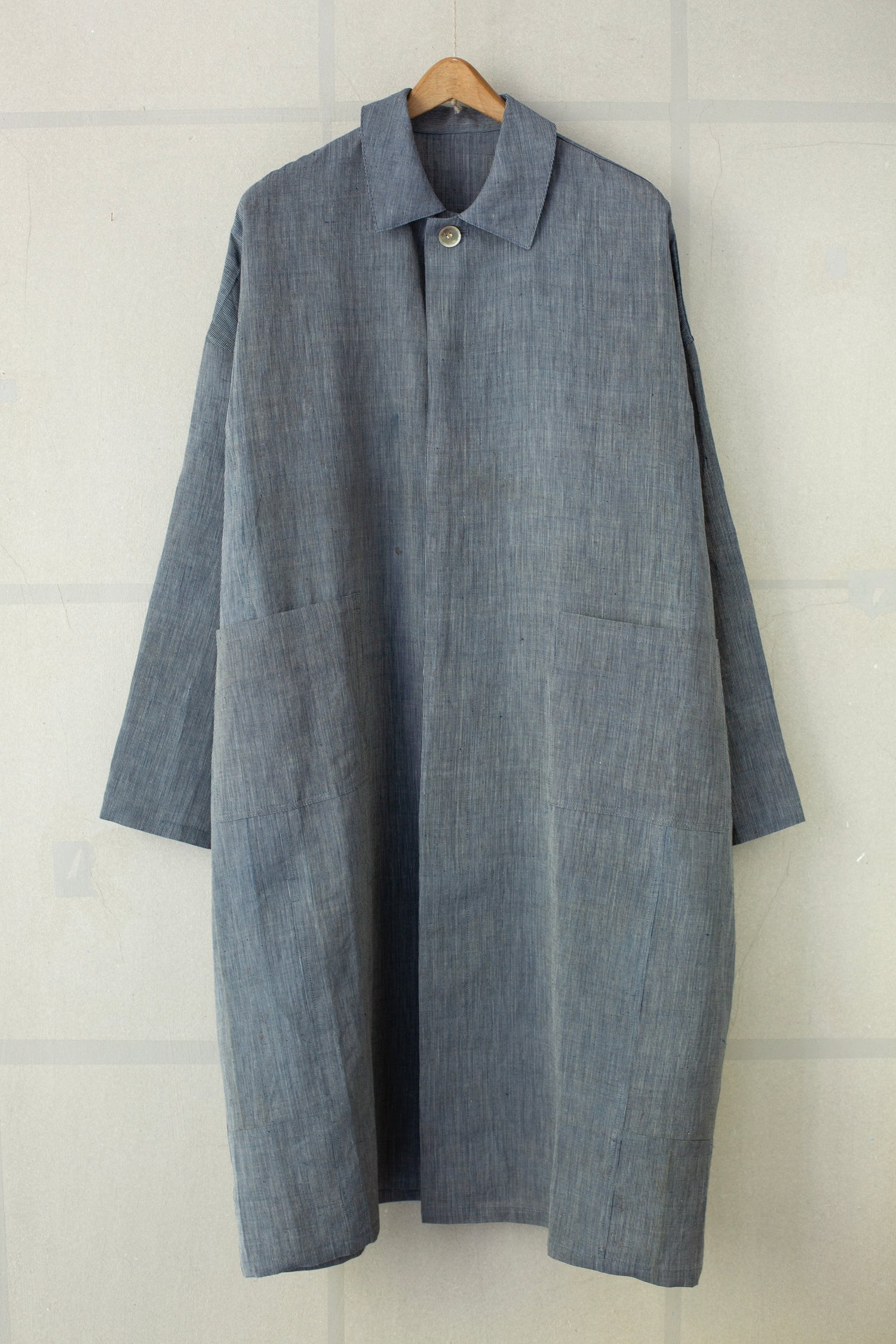 The antique ramie fabric, a type of bast fiber, is unraveled from kimonos woven about 100 years ago. The distinctive, taut texture is unique to hand-spun KARAMUSHI (or CHO MA) and the hand-woven ikat patterns.