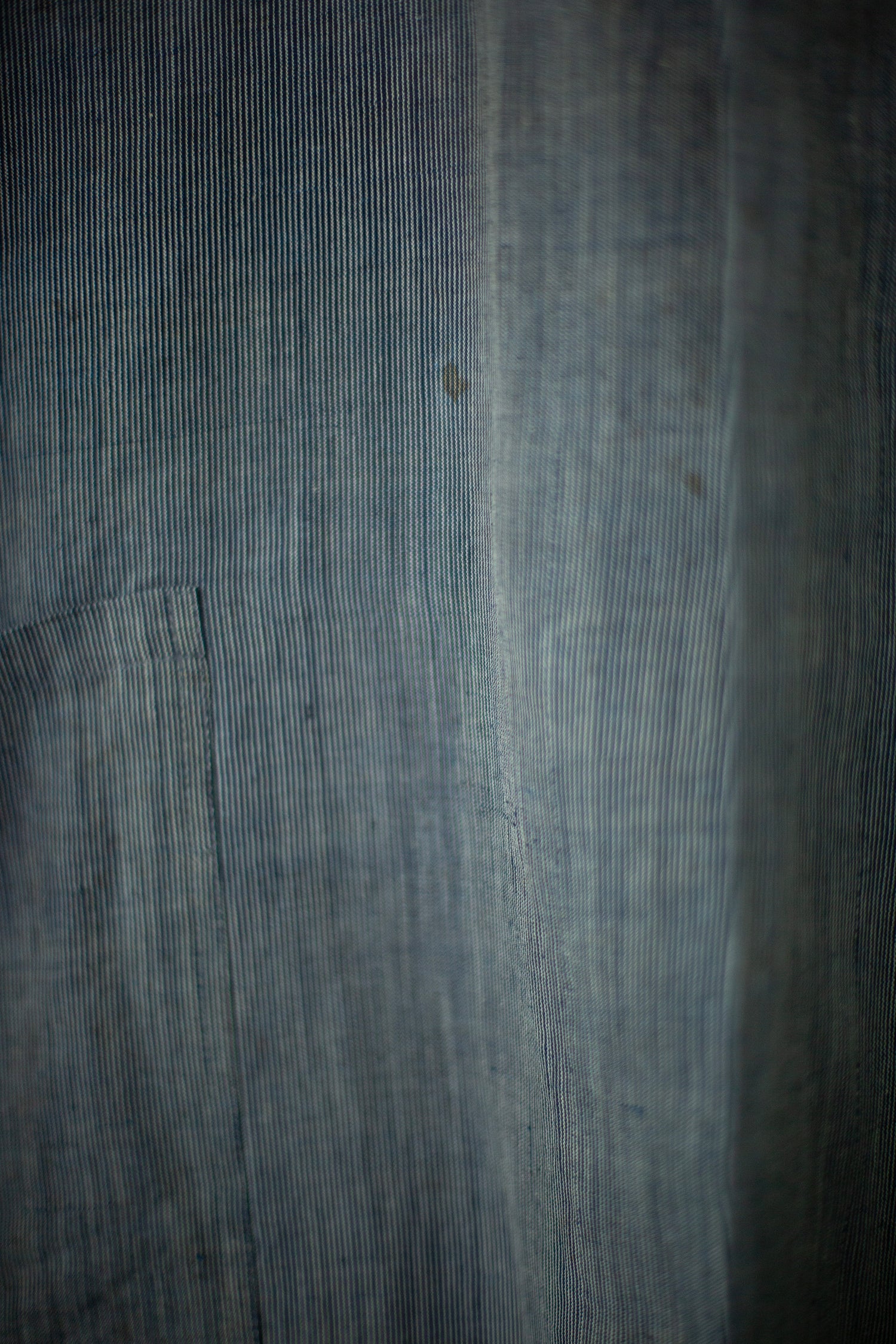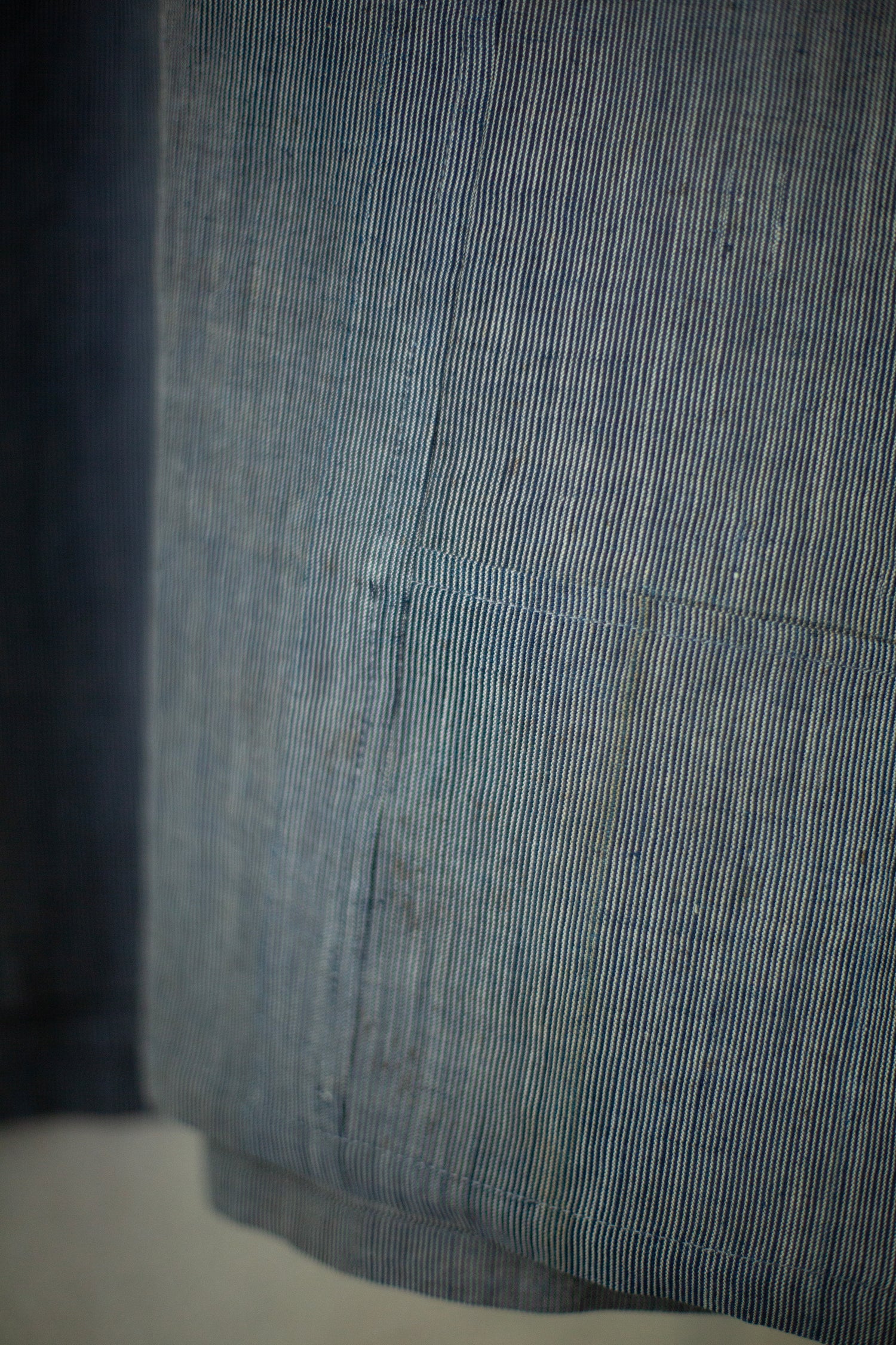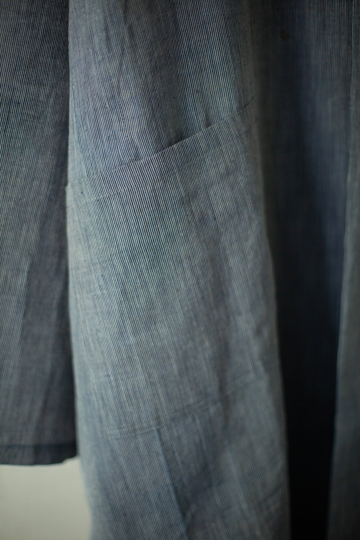 The shape is from a historic pattern of a French shirt and uses almost all the fabric of the old kimono, leaving very litttle waste.