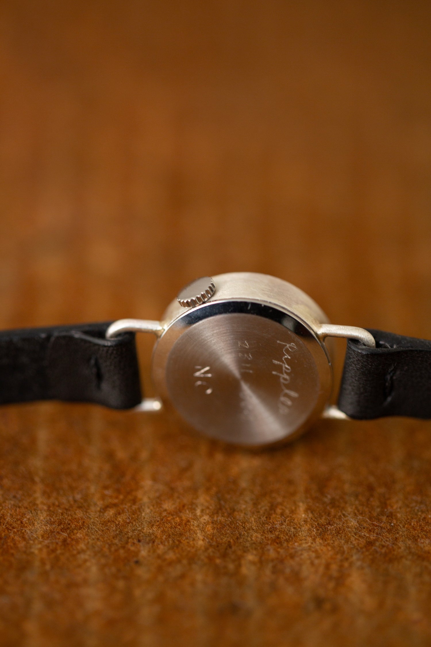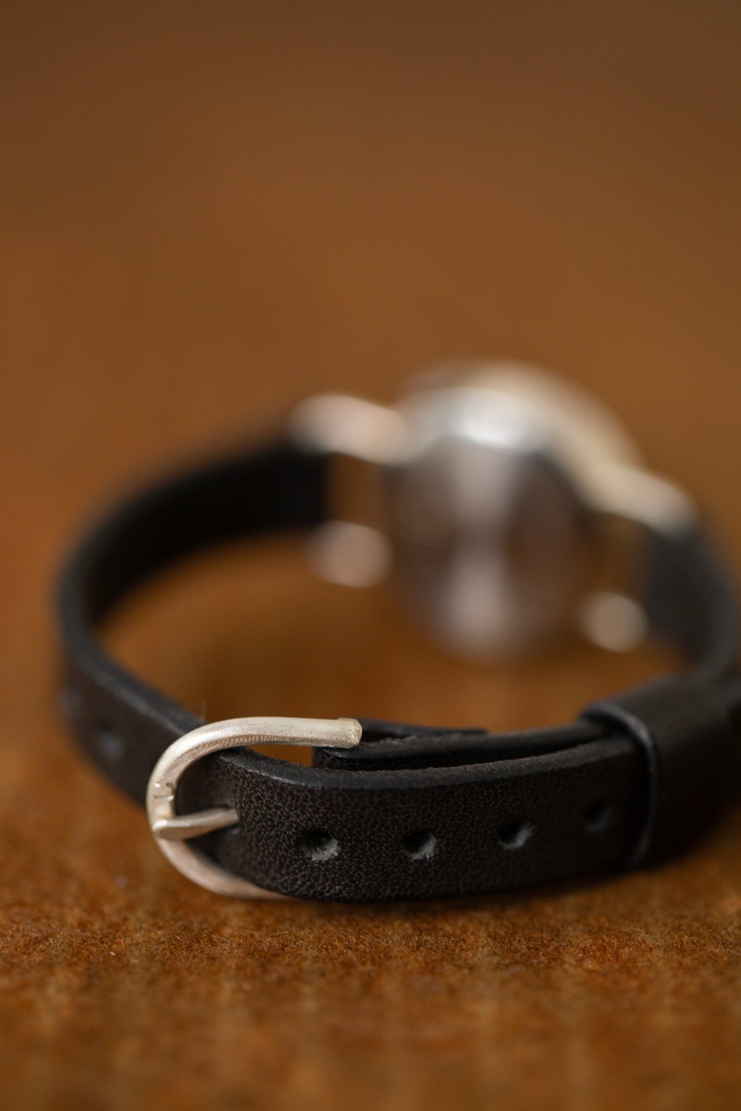 Handmade watch with leather bracelet, brass dial and 925 sterling silver case and buckle.