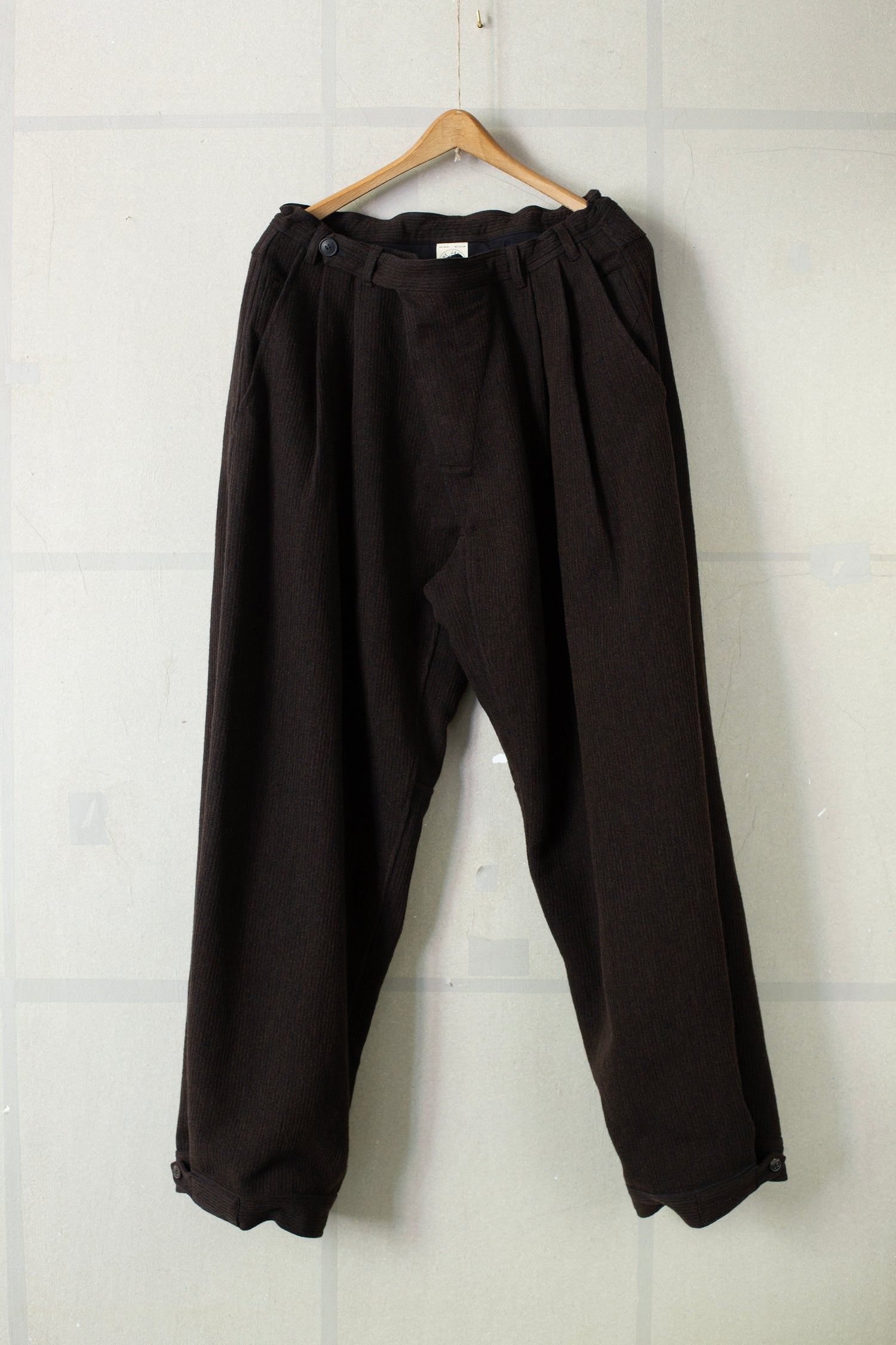 TROUSERS#87 - RIDGED LINEN WOOL EGGPLANT/INDIGO