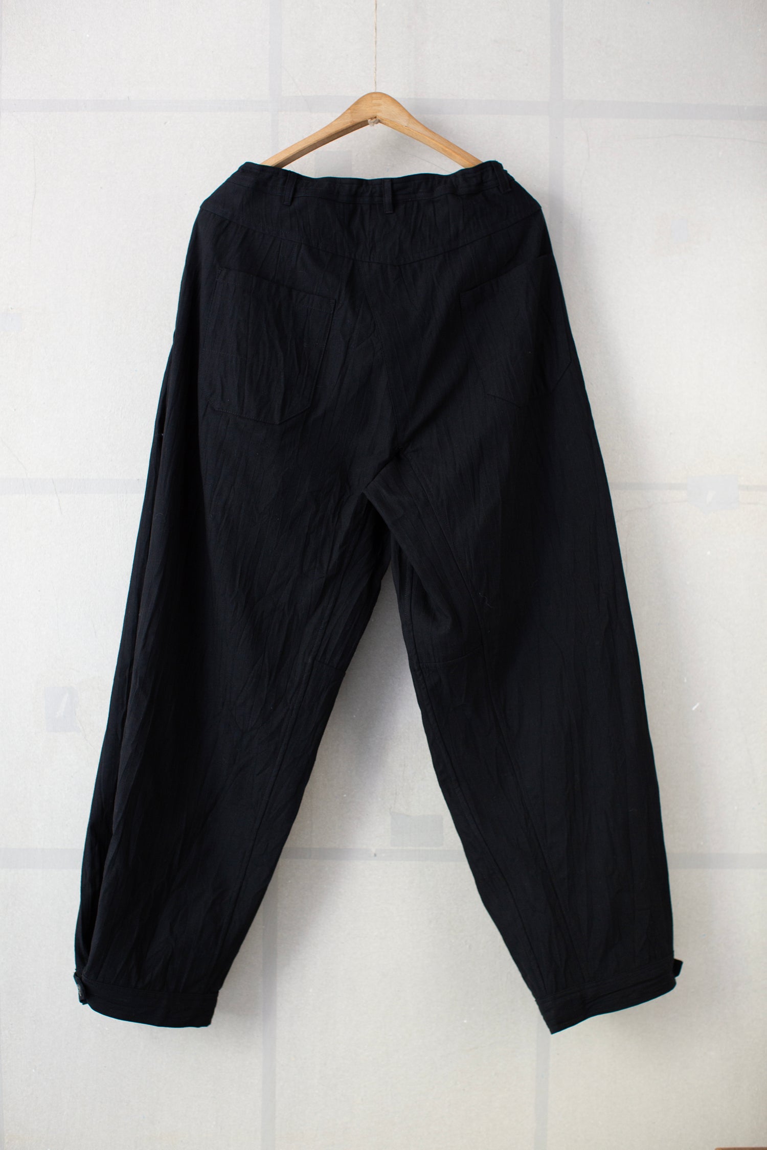 TROUSERS#87 - WRINKLE COTTON BLACK STRIPED