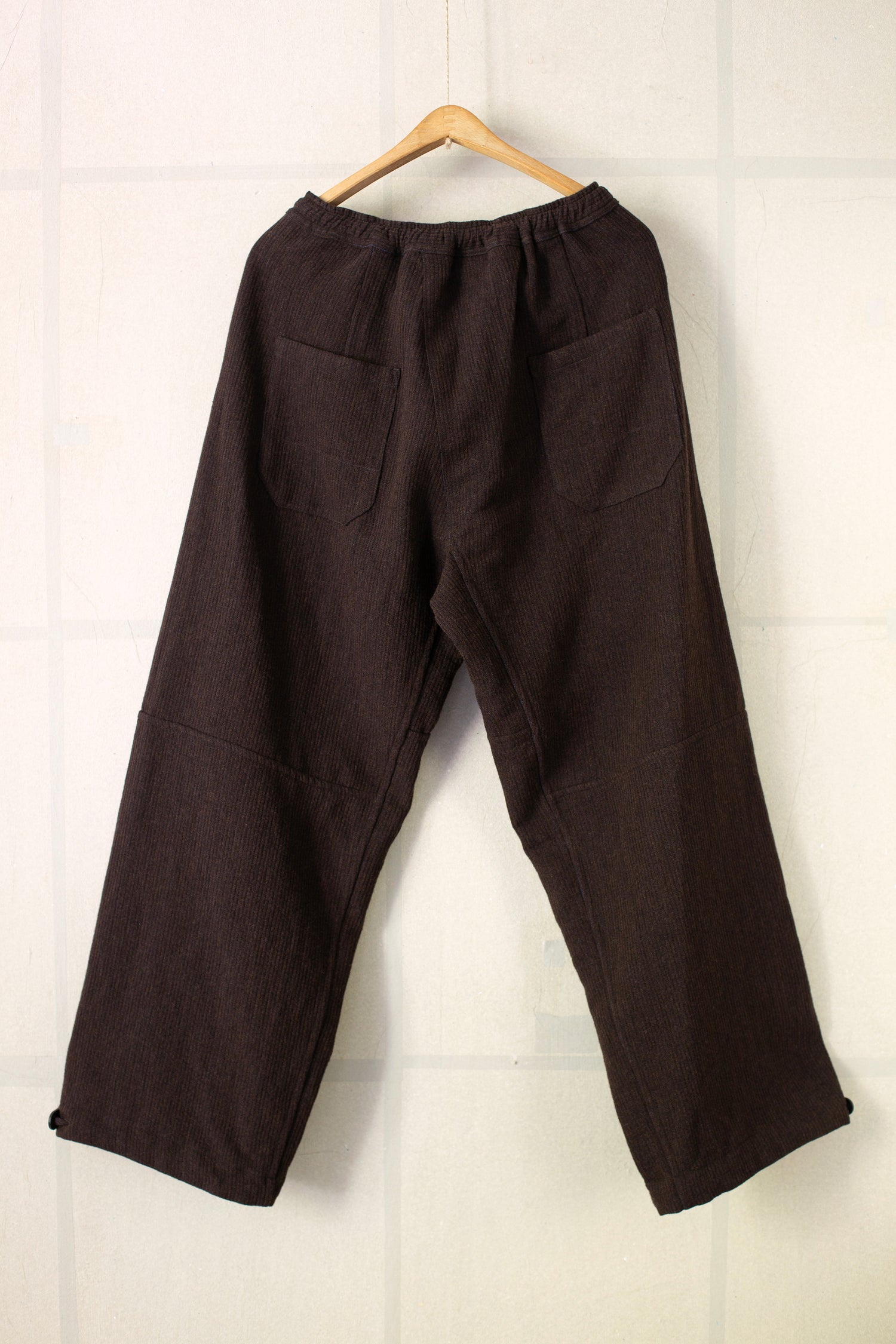 TROUSERS WITH ELASTIC WAISTBAND IN THE BACK, SEAM AT THE KNEE AND DRAWCORD AT HEM FOR GATHERING.