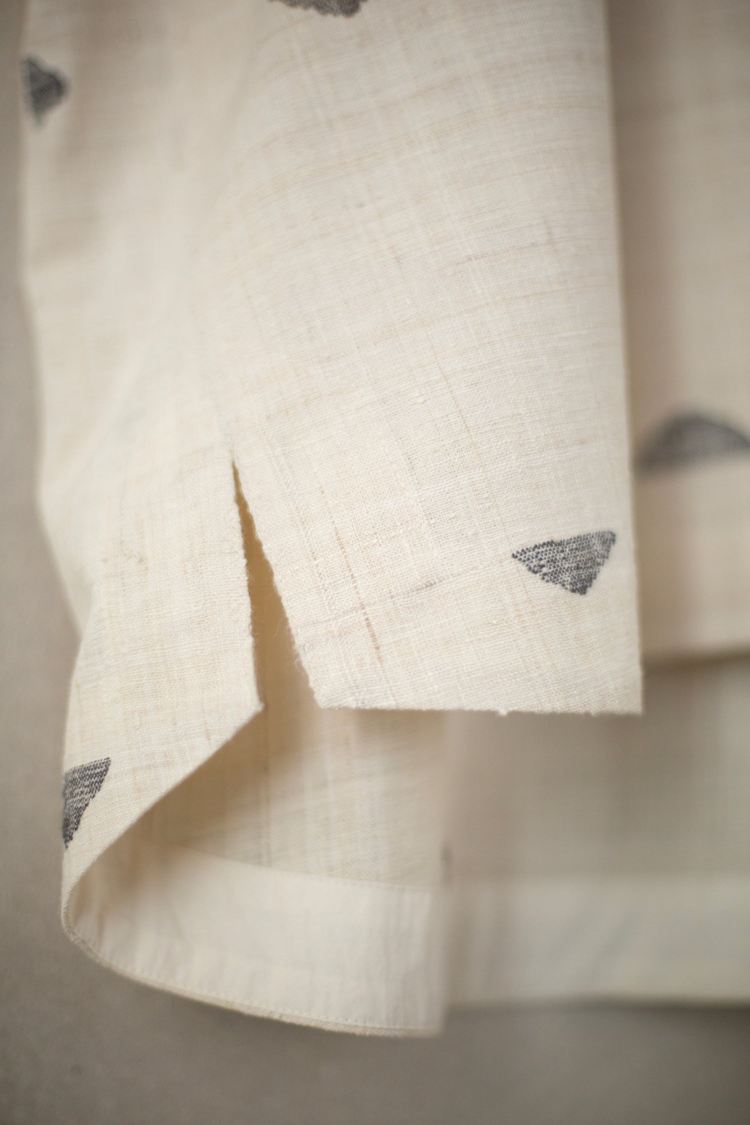 FACING IN AN UNDYED 100% COTTON TYPEWRITER, WOVEN ON A JAPANESE SHUTTLE LOOM.