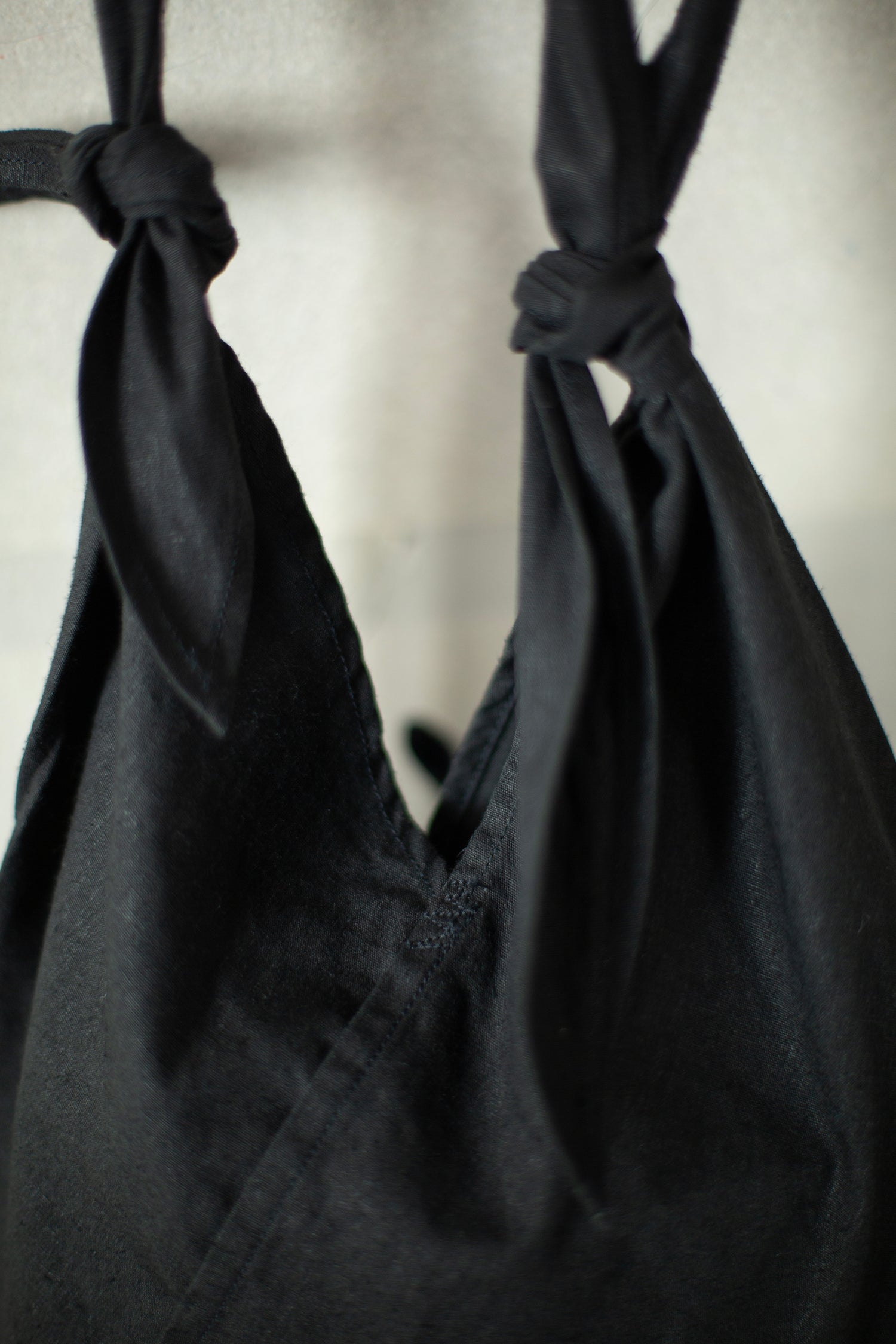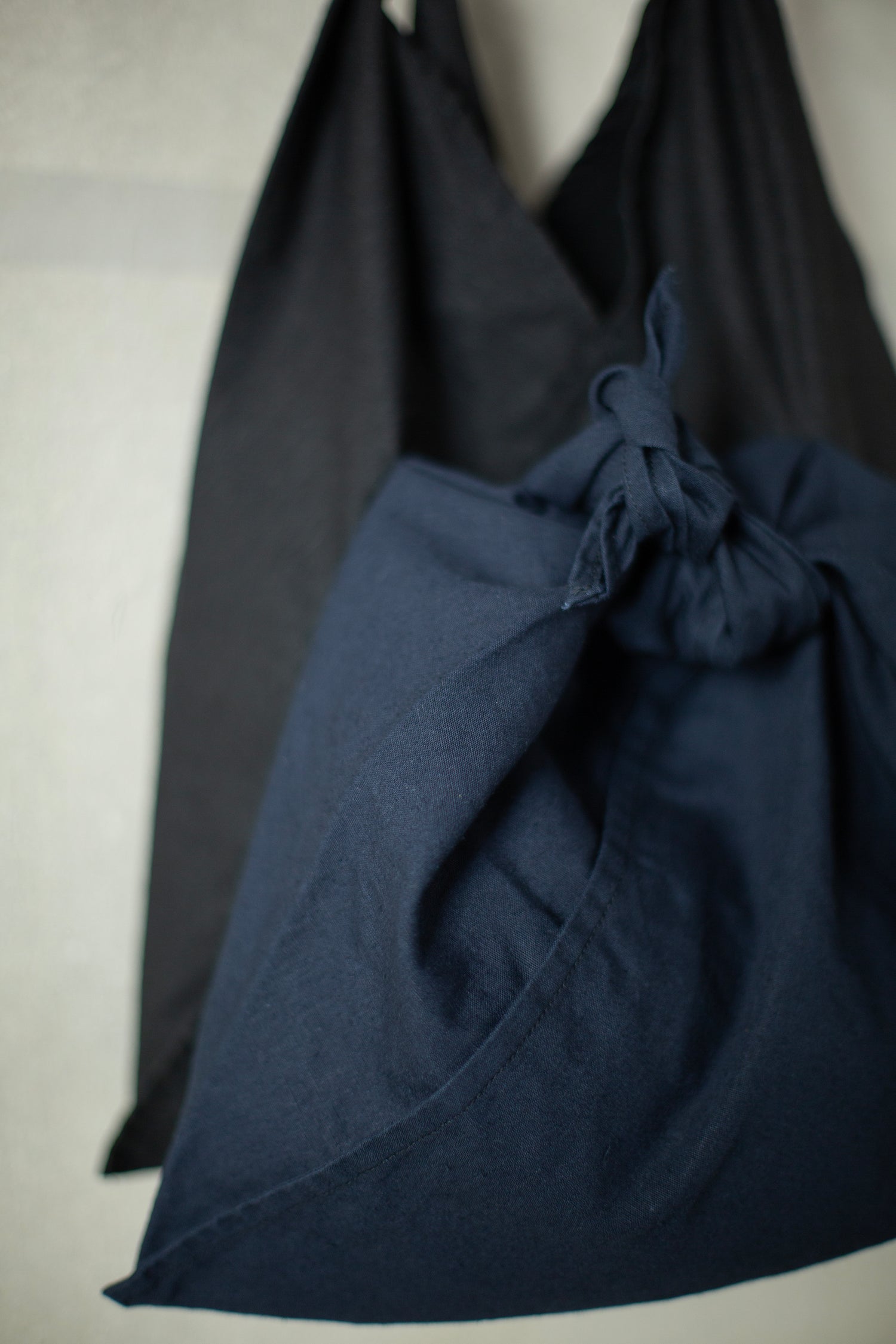 Two-layered, furoshiki style, Azuma bag in navy and black hemp cotton weather by Mittan.