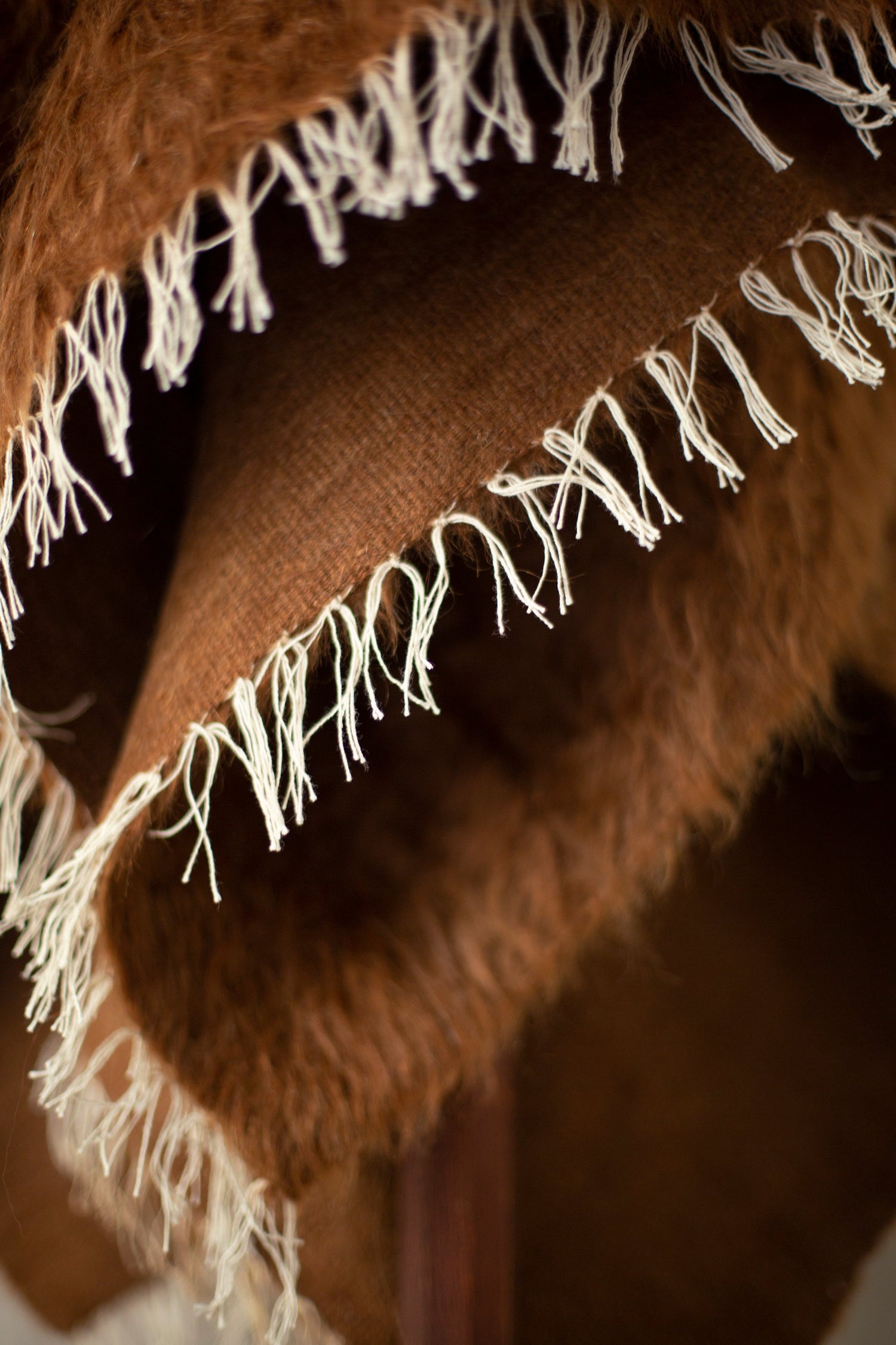 The soft hair of mountain goats is combed and woven with woolen yarns resulting into a beautiful flat & hairy plain weave.