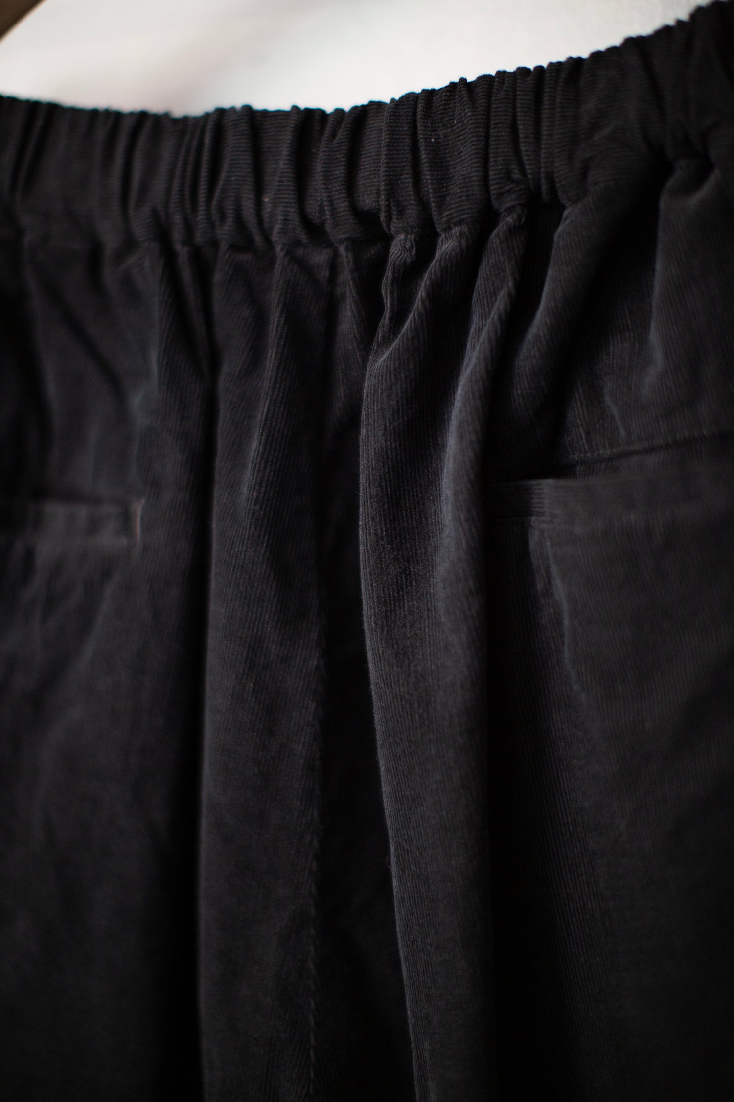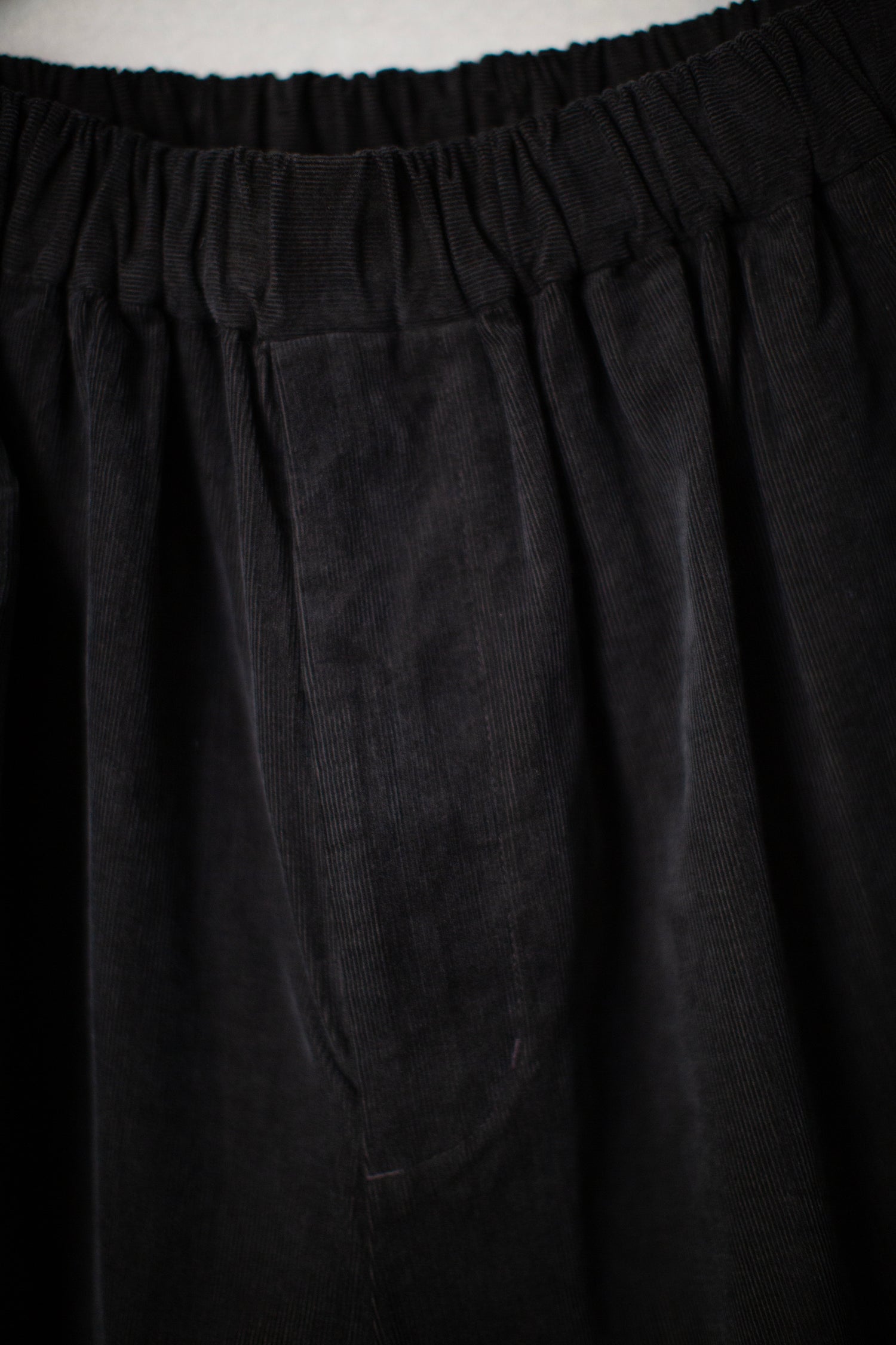 Wide-leg easy pants by Yoko Sakamoto in natural kakishibu (persimmon tannin) dyed micro corduroy with on-seam side pockets, welt back pockets, elasticated waistband and inner drawstring.