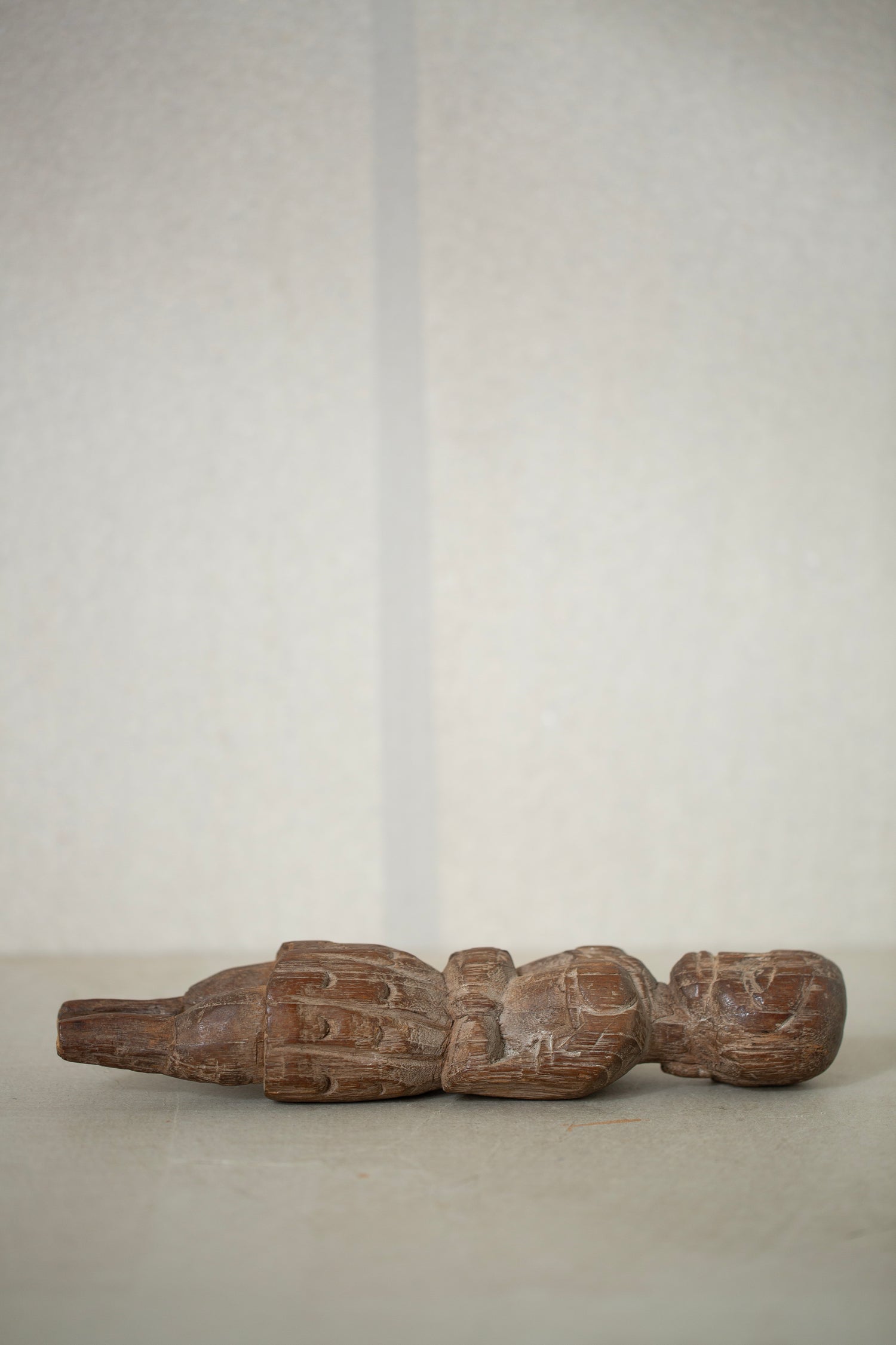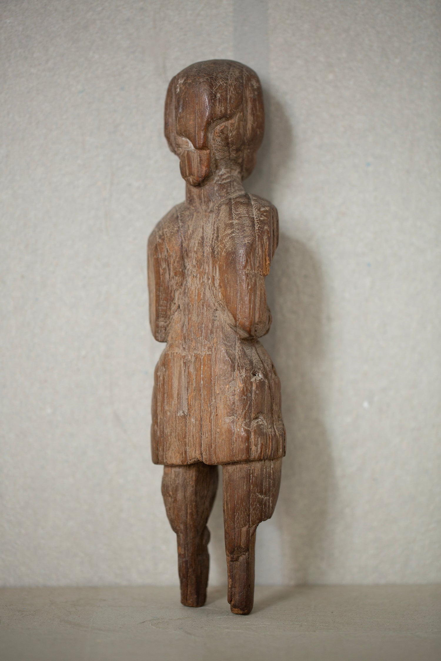 Handcarved wooden statue without stand in used condition but beautifully aged.