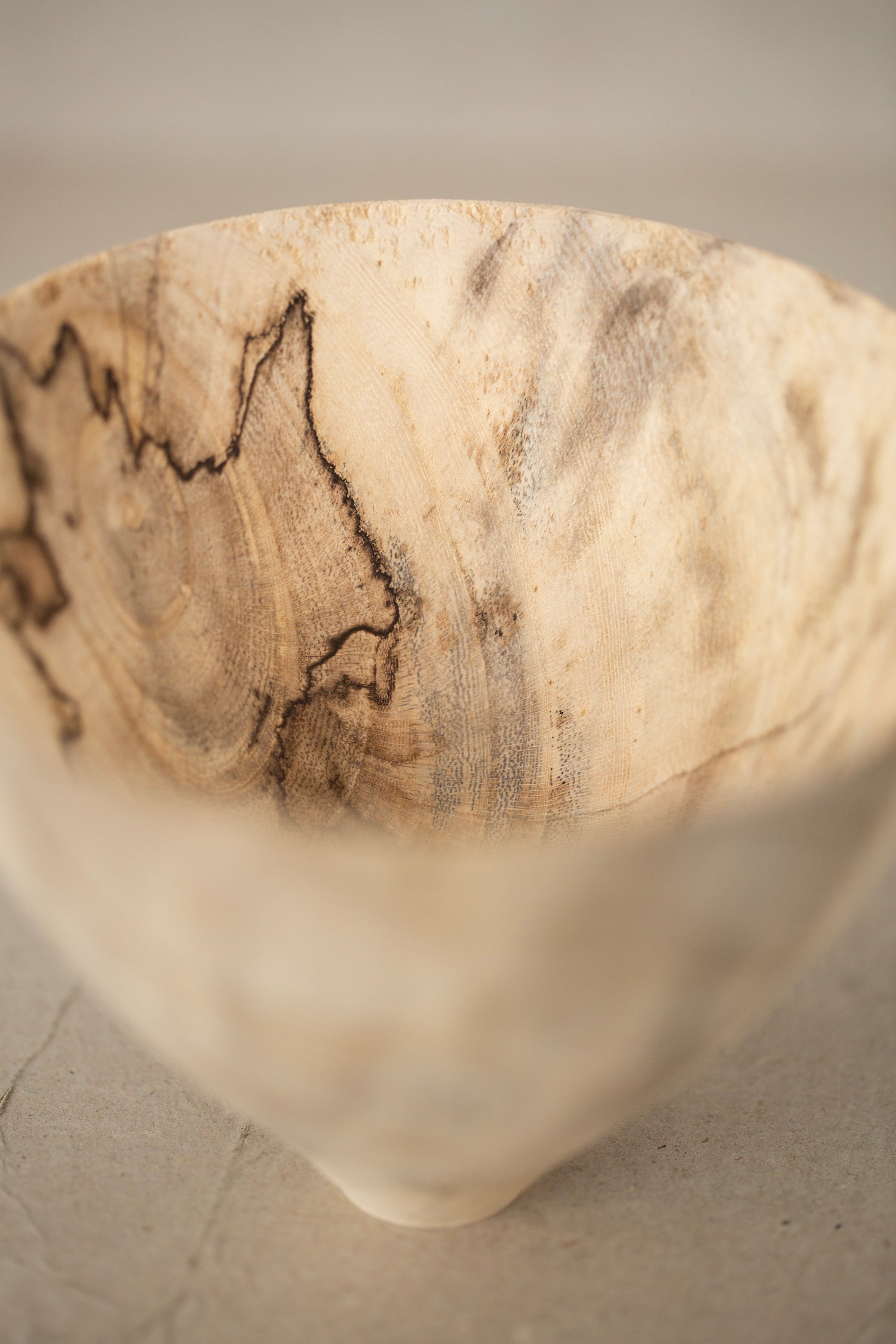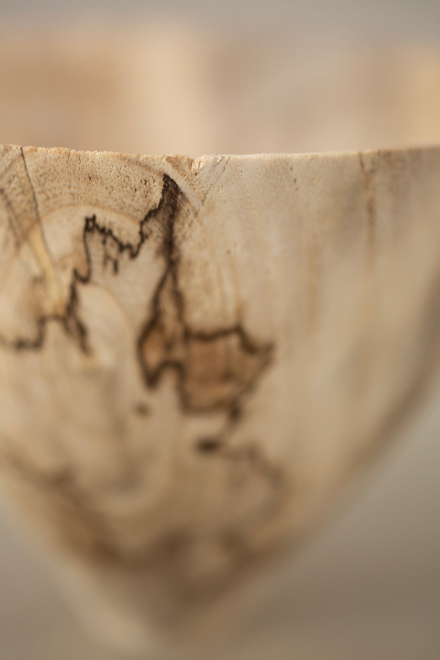 A fine wooden object, turned in Japanese Enoki wood, which has been aged outside for approximately 12 months before the final process.