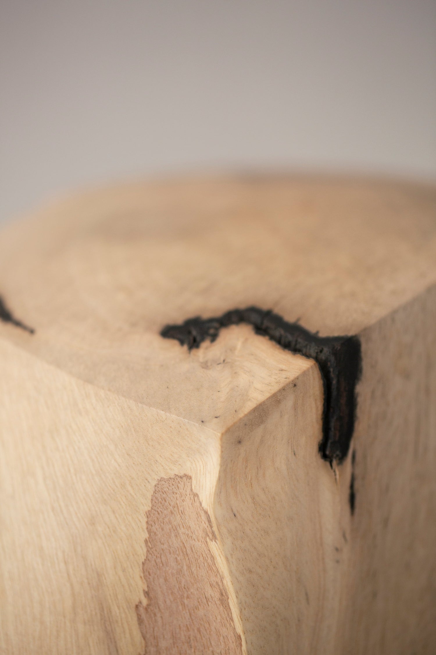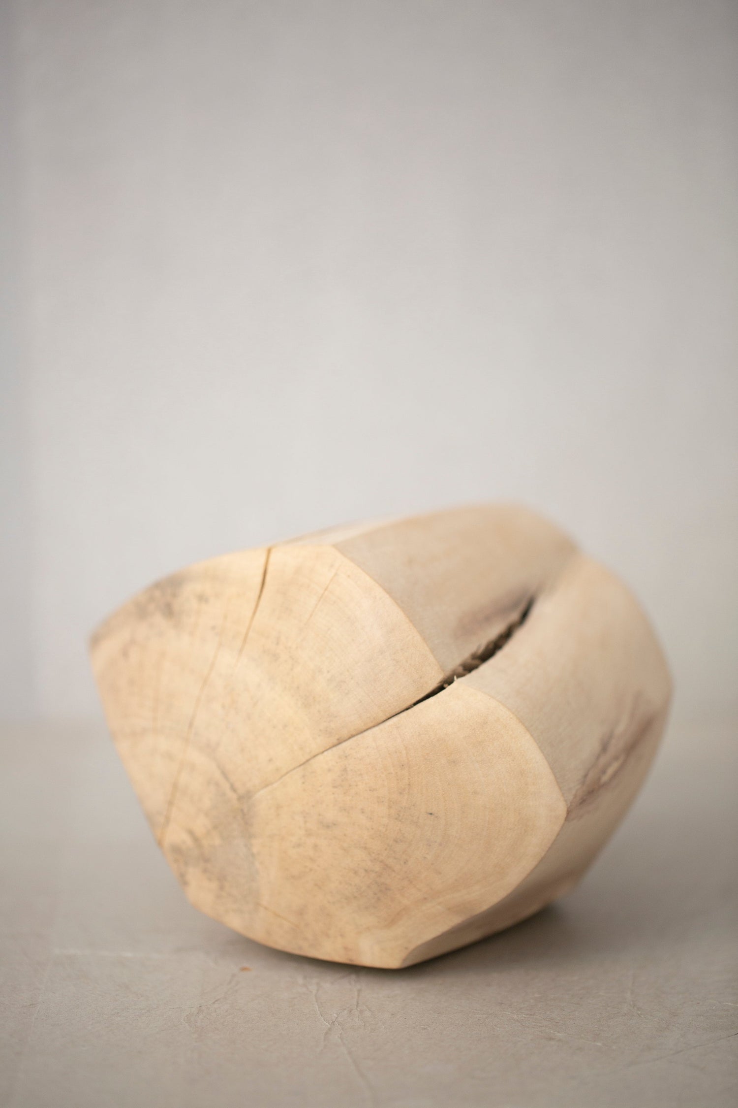 Hand carved and manipulated wooden sculpture by Mamoru Fukui with smoothened surfaces.